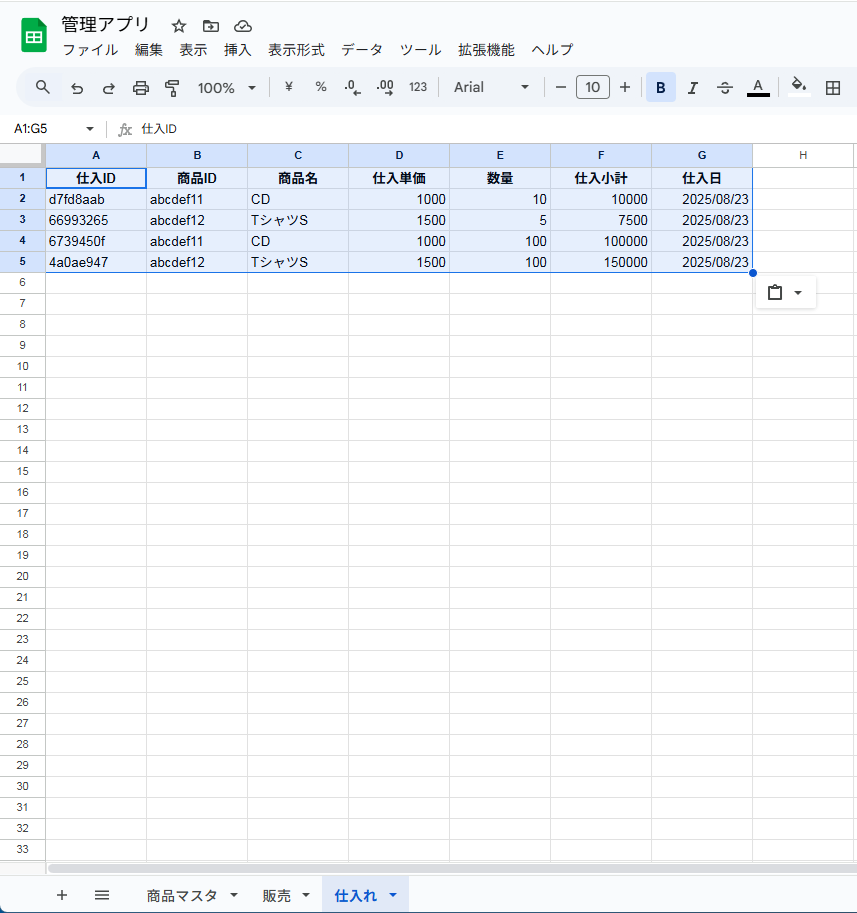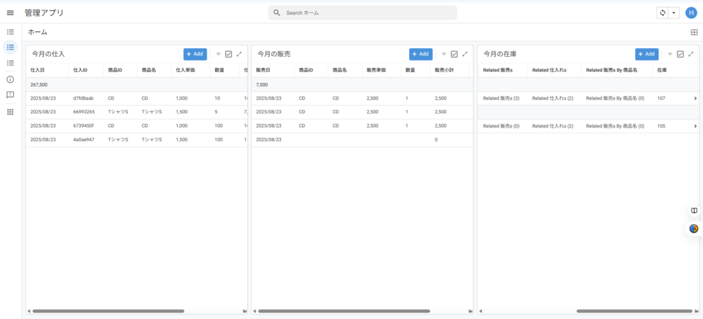 これで仕入・販売・在庫の管理が出来るアプリの完成です!