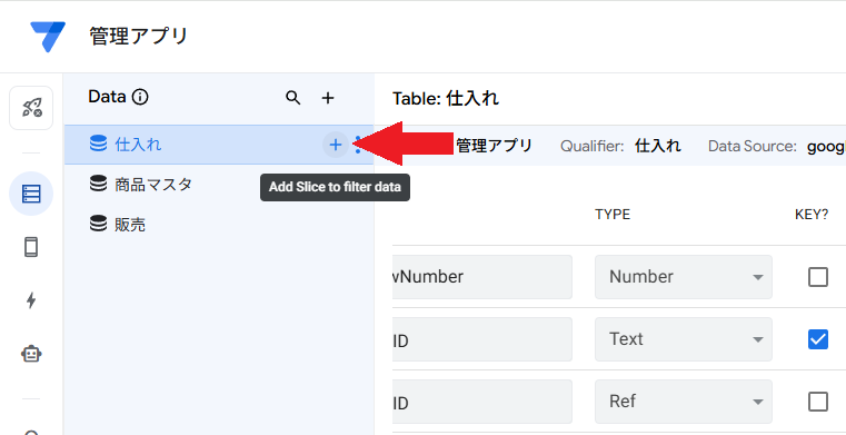 仕入れテーブルの右側の+をクリック。