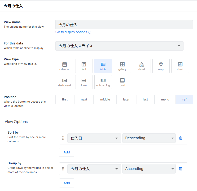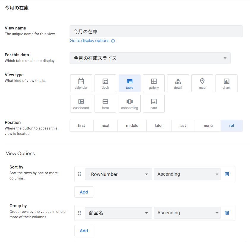 • View type「table」